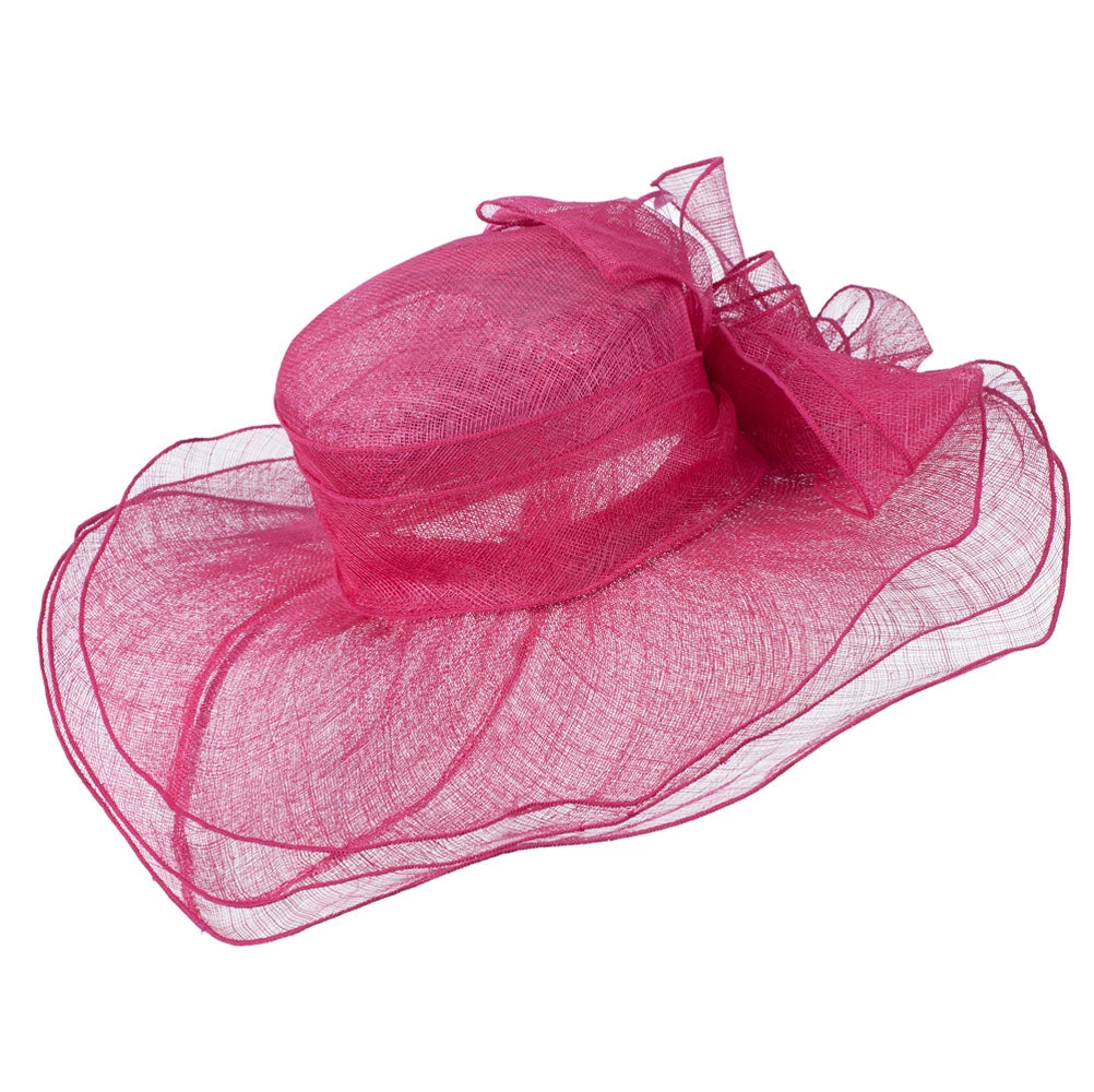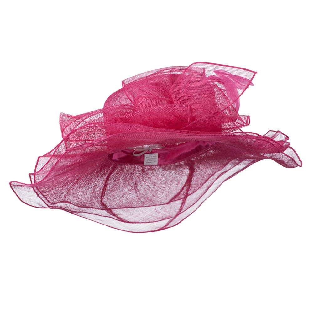 Our 3 Layers of Ruffled Brim Sinamay Hat is high quality ladies fashion hat this summer. This highly decorative sinamay hat is excellent for special occasions and outdoor events such as weddings, church, tea outings, garden parties, lunch dates and others. Crown of hat sports a large decoration hat band on one side of hat. This hat band is adorned with big bow and feathers, adding elegant style to the hat. Also, this hat features 3 layers of ruffled brim for more of dressy look. This fashionable sinamay hat not only keeps your head in cool condition throughout summer but also offers you gorgeous look for your special outings. You can find our ladies fashion hats in our other amazing styles and colors as well.