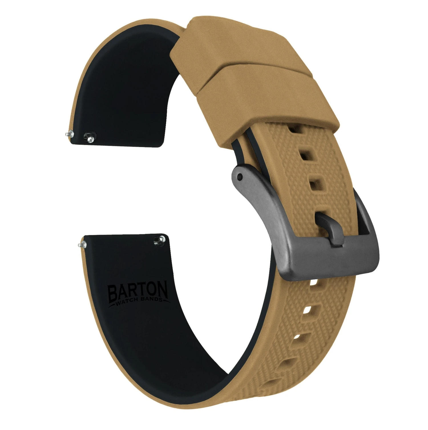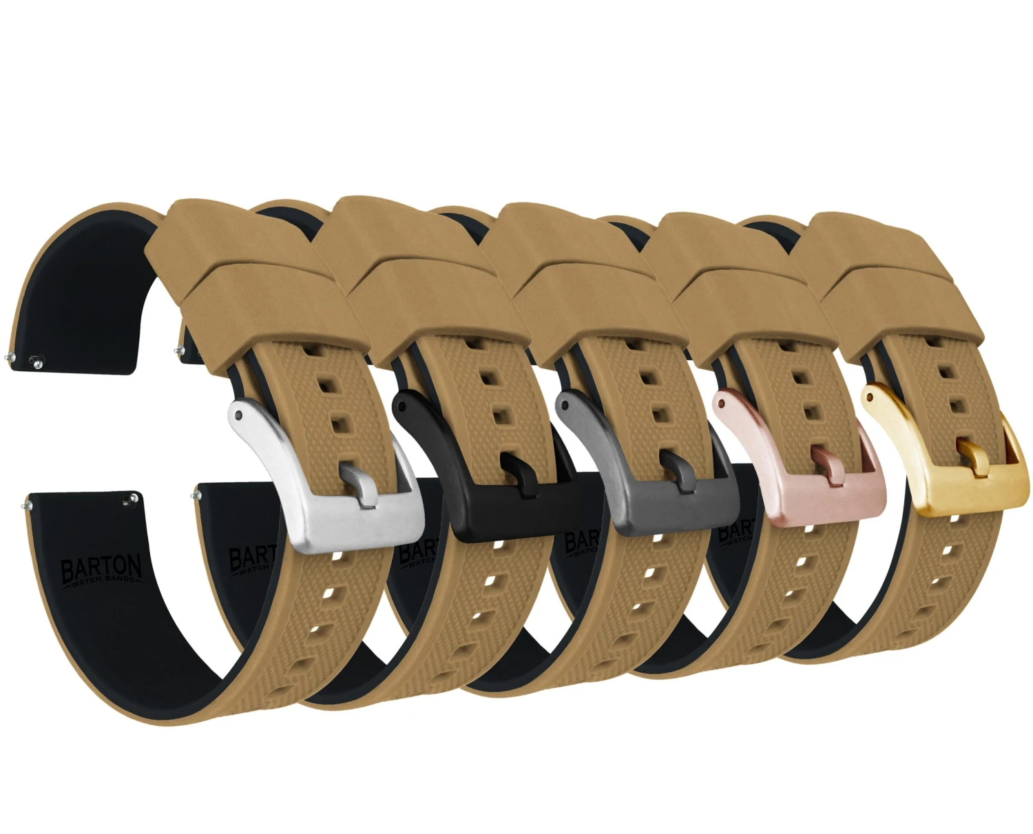 Our Elite Silicone Quick Release watch straps feature a premium textured top, a 316L surgical grade brushed stainless steel buckle and a 2mm taper from watch head to buckle. Each band also comes standard with two included lengths to assure they will be a perfect fit for nearly anyone. Swap out in just a few seconds and without tools! Pair this silicone rubber watch band with our Leather or Canvas quick release bands to take full advantage of the opportunity to ‘Switch it Up’ on the go.