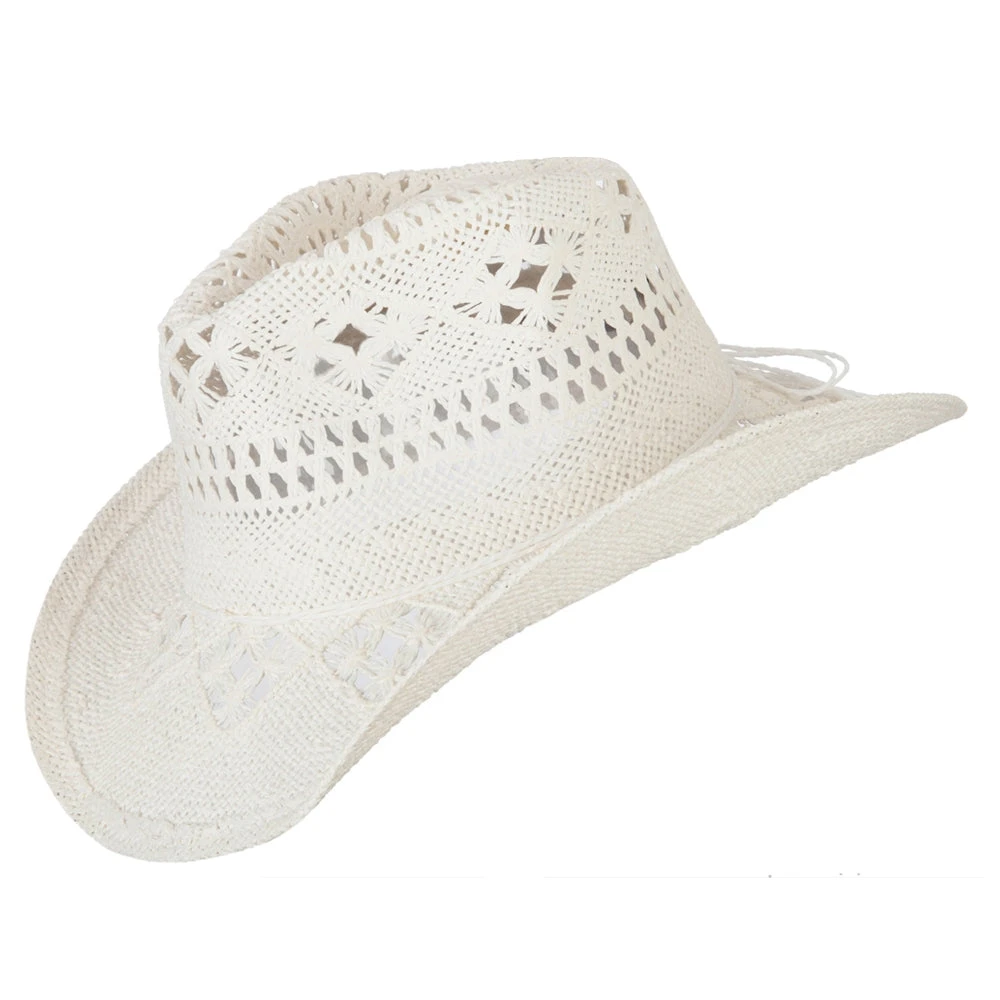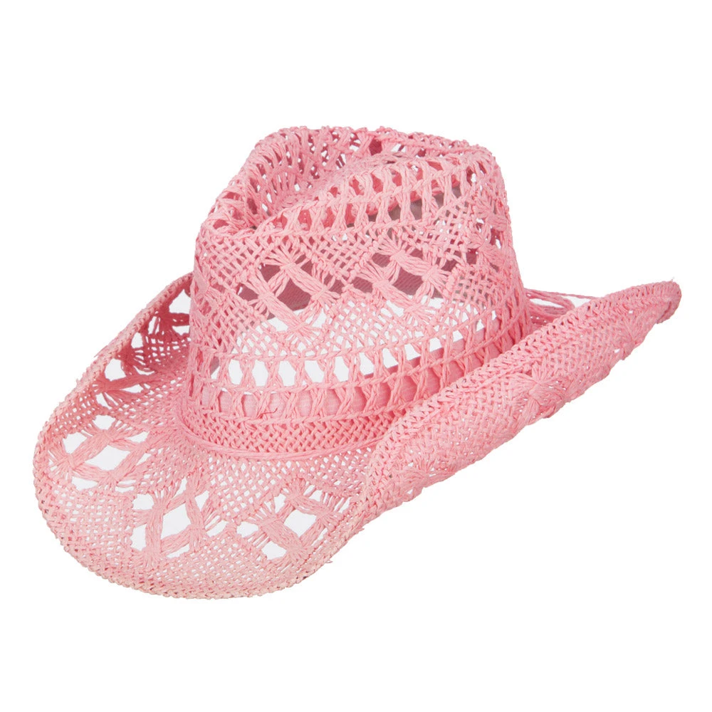 Bring out our Solid Color Straw Cowboy Hat for your next summer outing! Our paper straw cowboy hat completes your cowboy outlook for costume events or other summer adventures. This vented straw cowboy hat keeps your head in cool condition at all times even in hot summer days. Inside of hat is fitted with an elastic sweat band to keep your head dry and comfortable during your activities. What is a unique feature about this hat is that brim on both sides is rolled up. Crown of hat is also featured with a thin ribbon string band for its added style. This durable and cool paper cowboy hat comes in other fashion colors as well, so you can choose your favorite one.