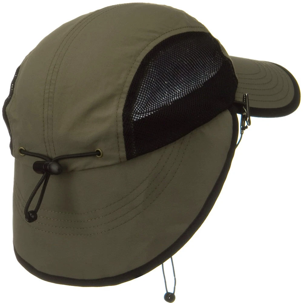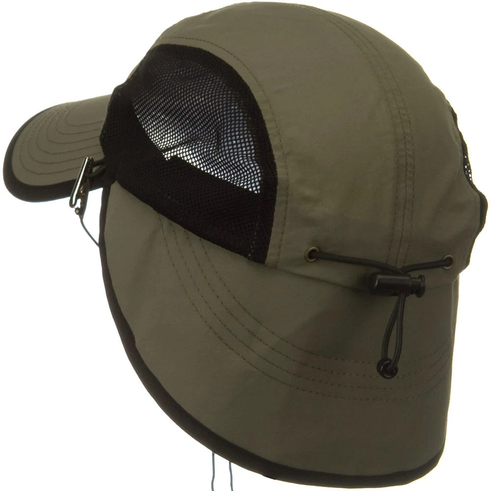 OurUV 50+ Talson Short Flap Cap provides you ultimate protection for your summer outdoor activities like fishing, camping, hunting, exploring and others. Solid in , this lightweight ball cap features meshed sides in white, allowing your head to be well ventilated even in hot summer. Also, back of cap is attached with flap for more of coverage from hot sun. This is UV 50+ sun cap that provides excellent sun protection for your whole head. Inside of cap is fitted with terry cloth hat band to keep your head dry from sweating. Made with thin and cool nylon material, this comfortable and breathable fabric of cap helps for easy body moisture absorption and quick dry out. For added feature, hat comes with chin string with toggle closure and this can be detached as well. This durable UV side mesh flap cap is must have item before you head out for your next outdoor expeditions under hot sun.