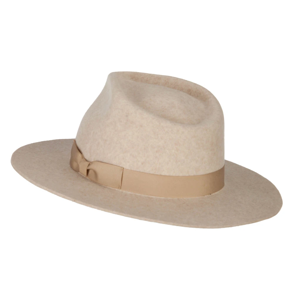 Women’s Wool Felt Grosgrain Ribbon Band Trim Pinched Crown Fedora Hat
